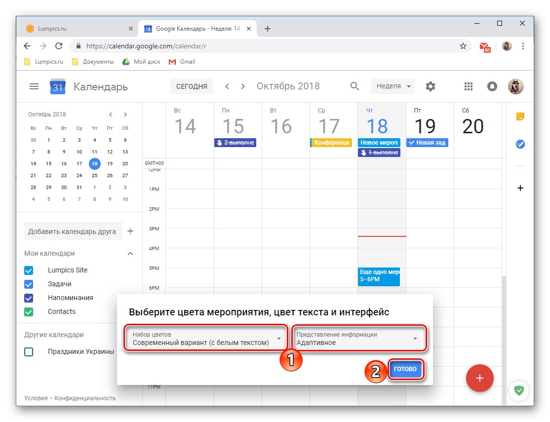 Всяка категория има свой собствен цвят, чрез който лесно можете да намерите този или онзи запис в календара. Ако е необходимо, показването на събития на която и да е от групите може да бъде скрито, за което е достатъчно да премахнете отметката от квадратчето до името му.