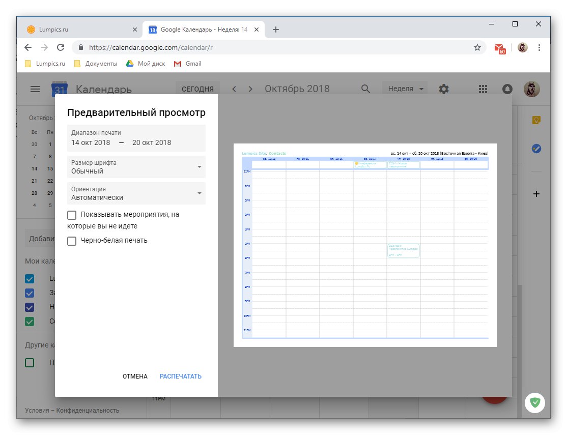 - "Печат" - ако е необходимо, винаги можете да отпечатате календара си на принтер, свързан към вашия компютър.
