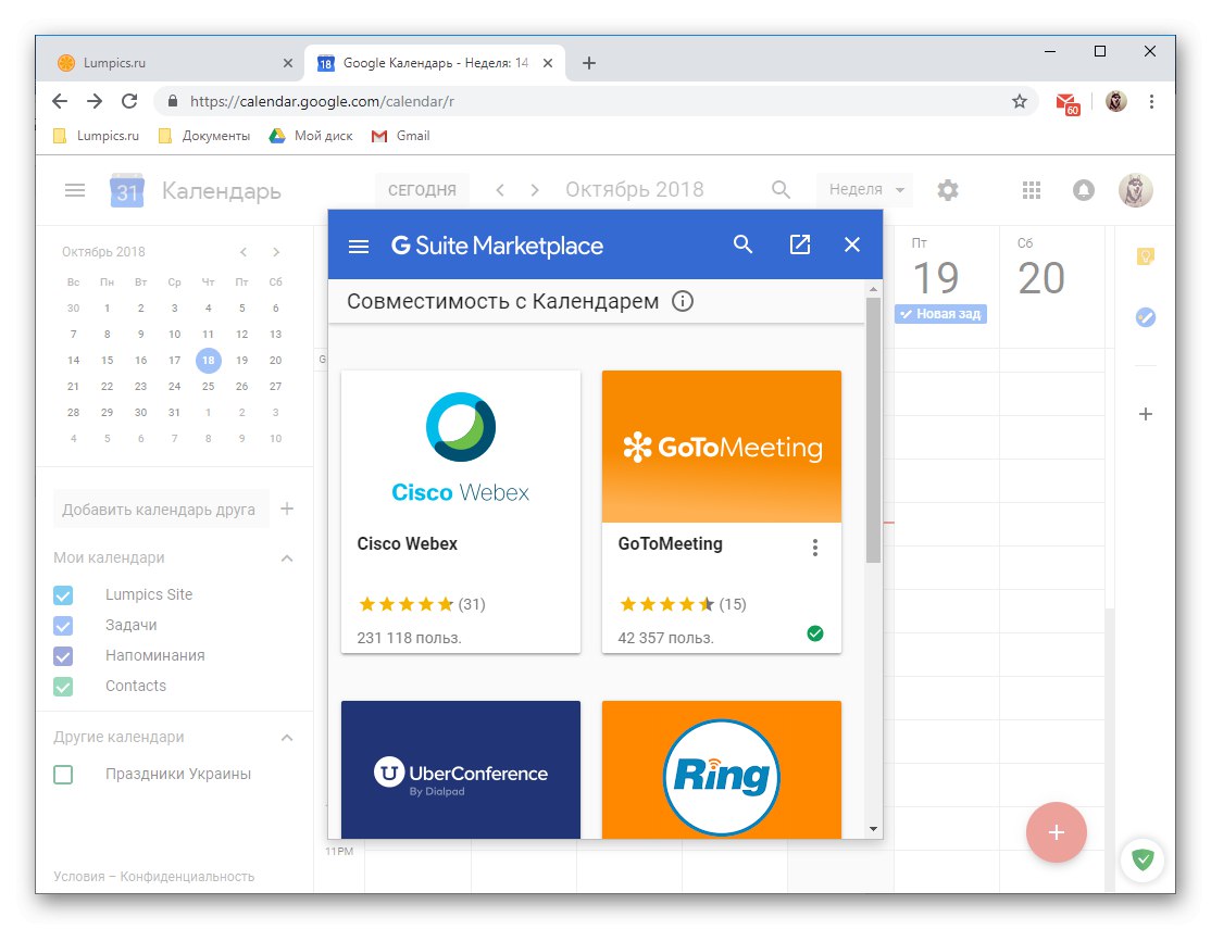 В допълнение към две услуги от Google, добавките от разработчици на трети страни могат да бъдат добавени към календара. Вярно е, че по времето на това писане (октомври 2018 г.) са създадени буквално няколко от тях, но според уверенията на разработчиците този списък ще се актуализира постоянно.